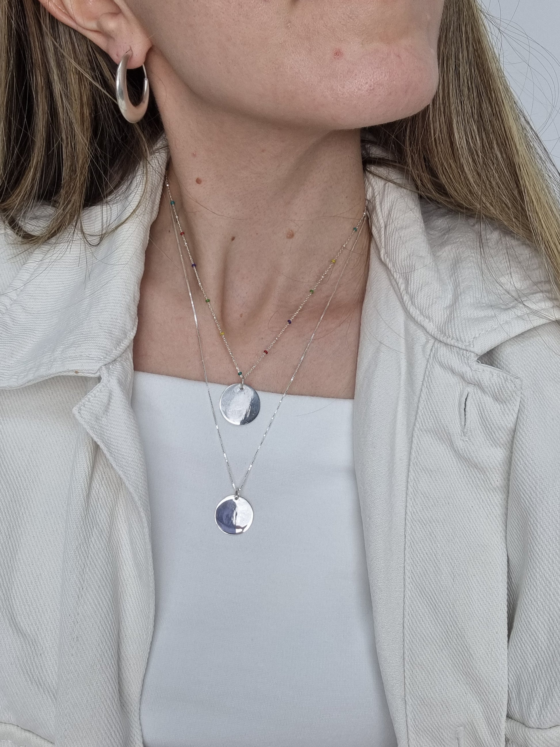 Su composición es de plata 925 y tiene una medida de 20 mm de diámetro.