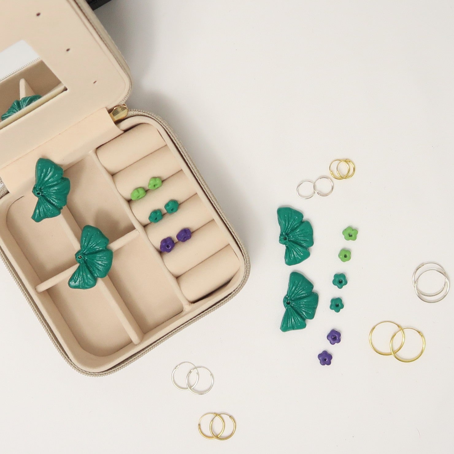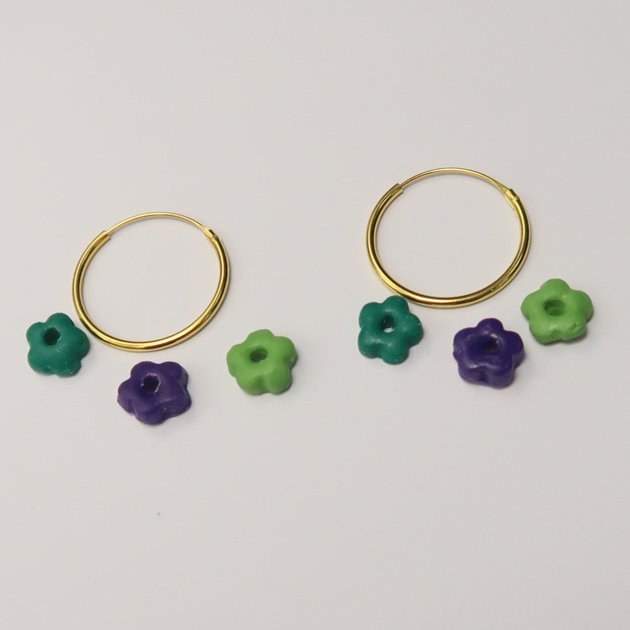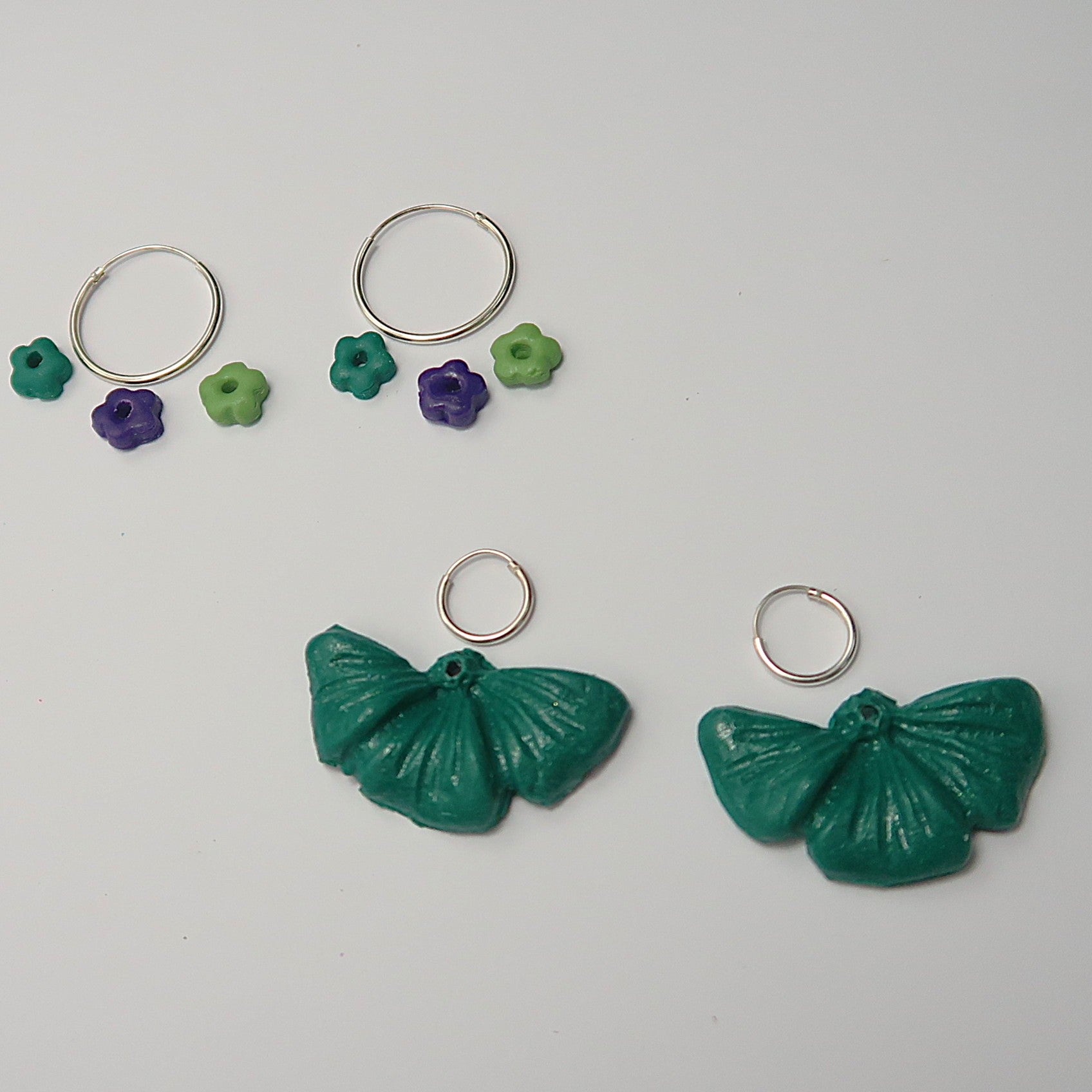 Tres abalorios hechos a mano con arcilla polimérica que capturan la esencia de lo auténtico: la belleza del detalle y la calidez de lo artesanal.