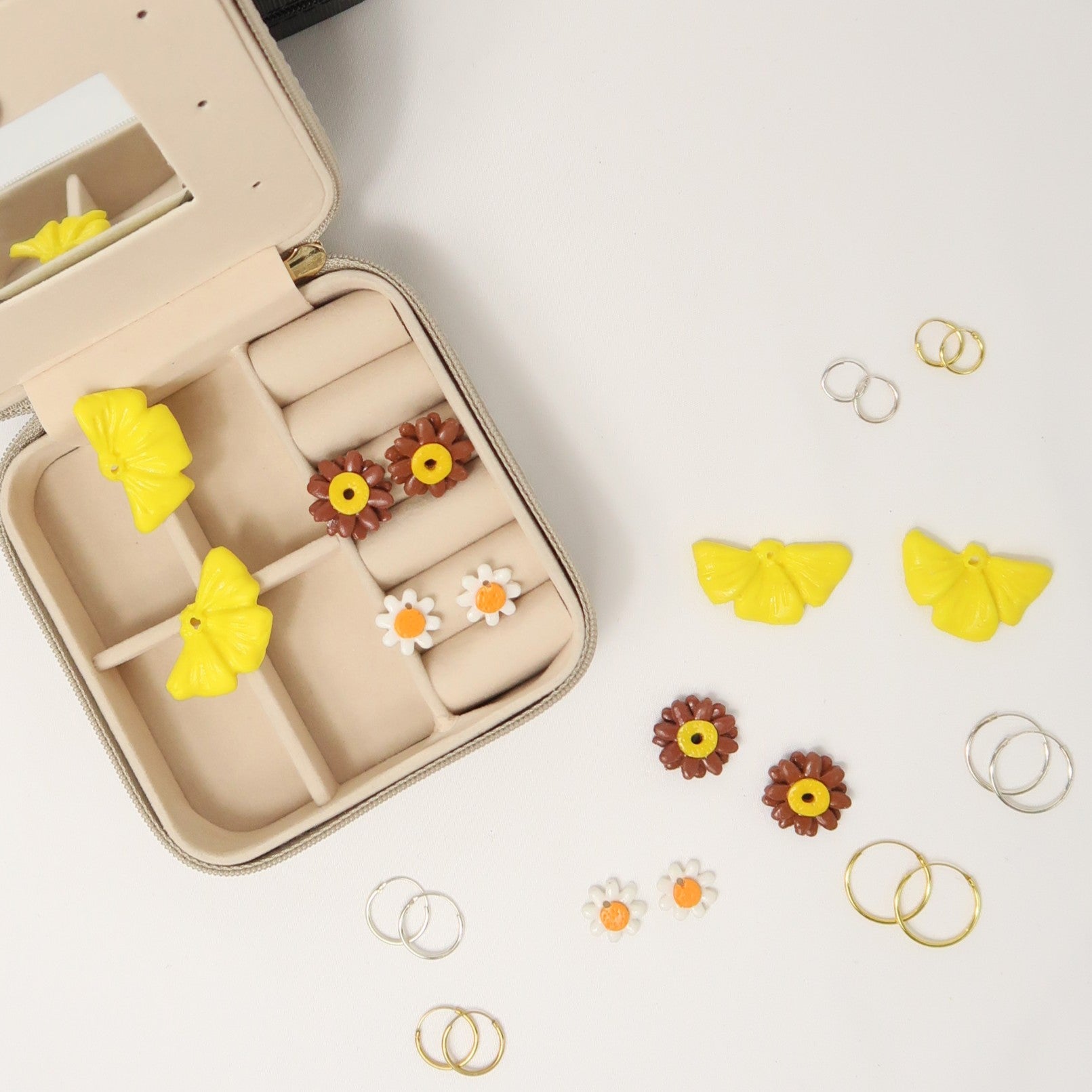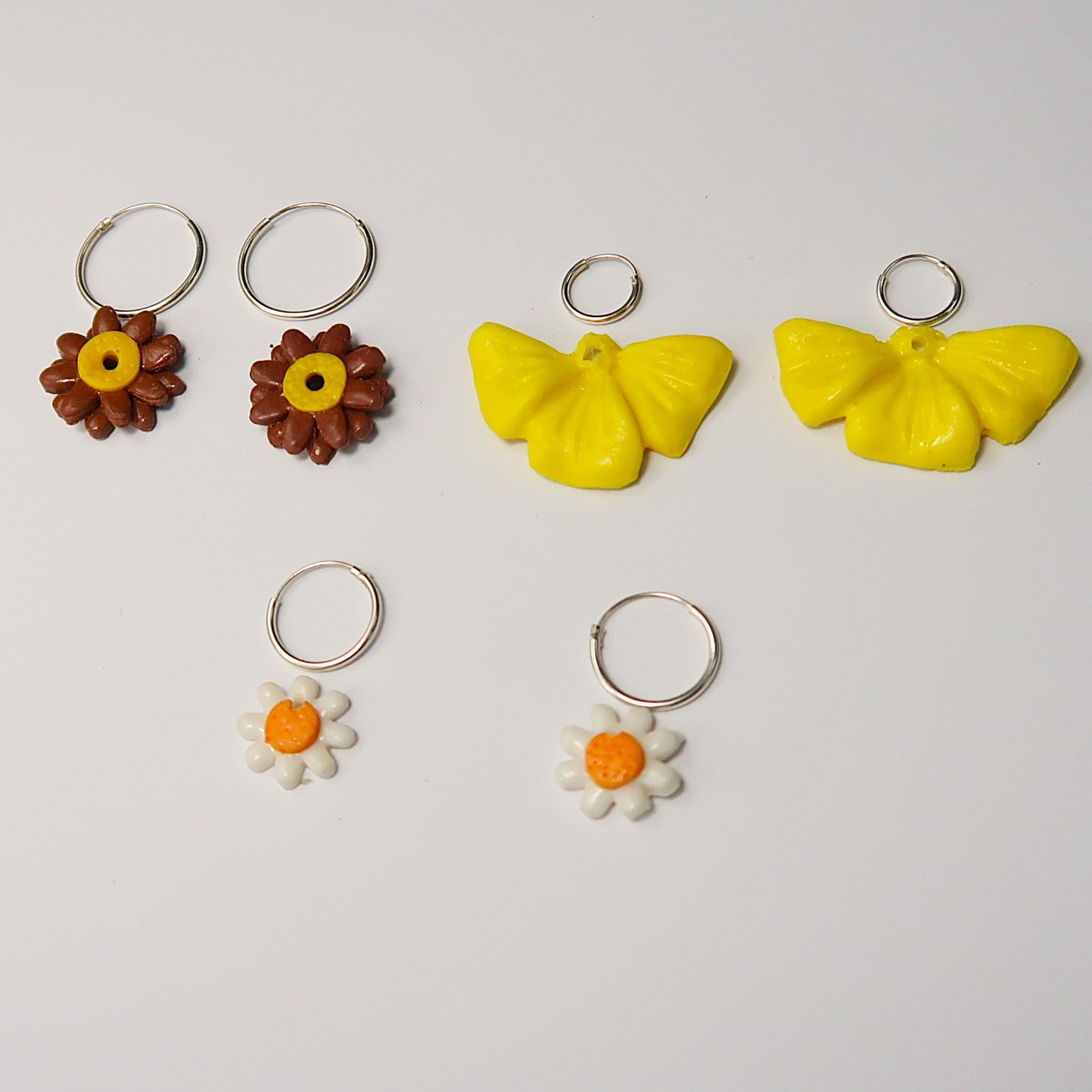 Tres abalorios hechos a mano con arcilla polimérica que capturan la esencia de lo auténtico: la belleza del detalle y la calidez de lo artesanal.