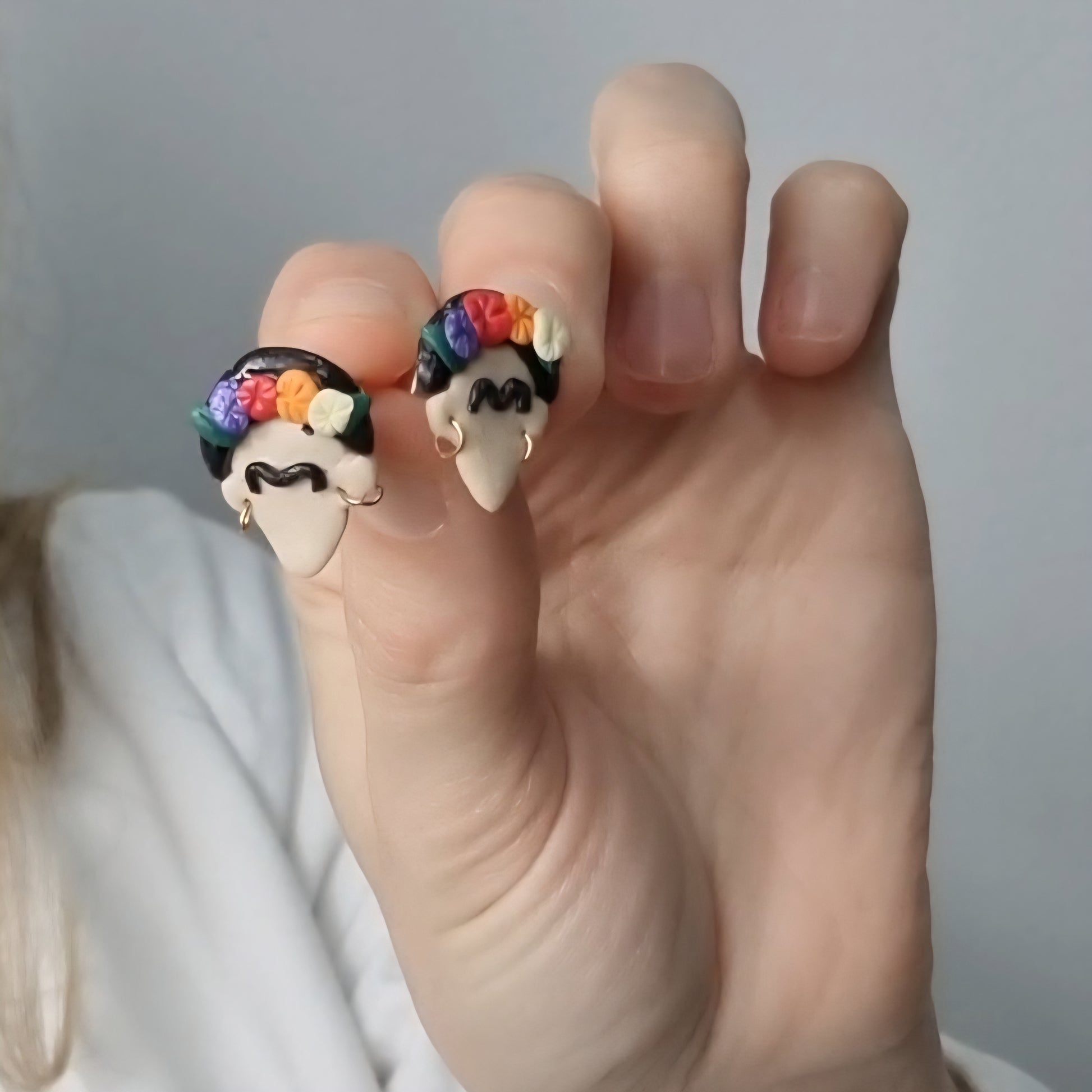 Estos pendientes hechos a mano lucen un diseño en forma de Frida Kahlo creada con arcilla polimérica. Tienen un cierre de tuerca a presión de acero inoxidable.